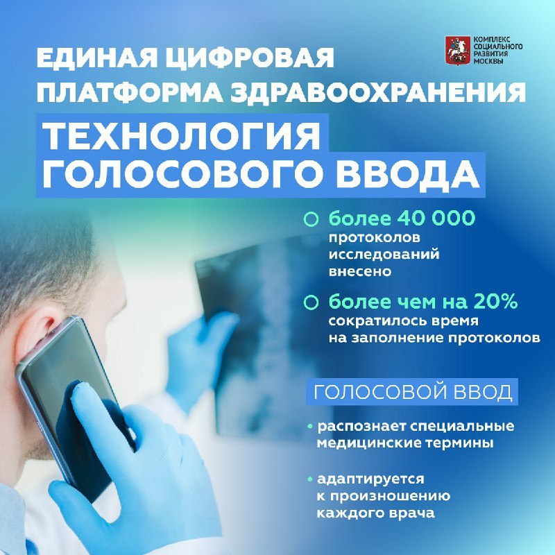 «Более года назад в рамках единой цифровой платформы здравоохранения мы запустили проект, позволяющий врачу фиксировать результаты рентгенологических исследований с помощью голосового ввода. За это время врачи заполнили уже более 40 тысяч протоколов исследований голосом. Так как теперь не нужно вручную набирать текст заключения, время на описание снимка сократилось более чем на 20%. Медики увидели в нововведении хороший потенциал и теперь применяют его в своей повседневной практике. Кроме того, благодаря единой цифровой платформе заключение сразу передается лечащему врачу, и также доступно пациенту в электронной медкарте», — рассказал Владимир Макаров, заместитель руководителя Департамента информационных технологий по цифровизации Комплекса социального развития Москвы.