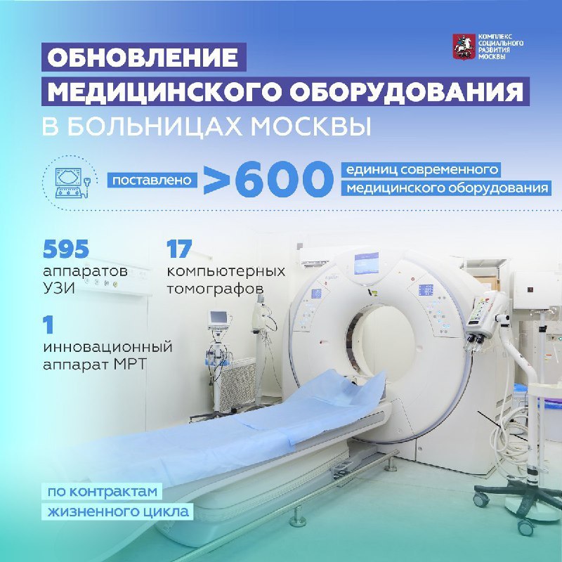 В более чем 40 московских стационаров поступила современная медицинская техника по контрактам жизненного цикла (КЖЦ). Всего завезено 613 единиц высокотехнологичного оборудования, среди которых: