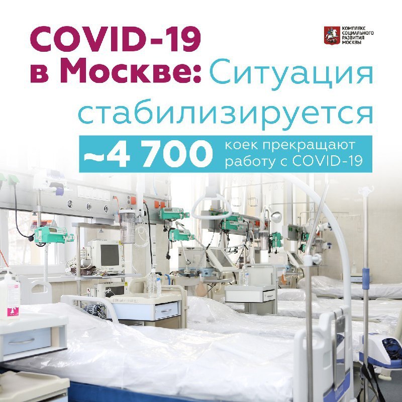 «Положительная динамика в эпидемиологической обстановке, которую мы наблюдаем в последнее время, позволяет нам вывести из работы с коронавирусом еще около 4,7 тысячи коек. К стандартной работе возвращаются два крупнейших стационара на две тысячи коек, перепрофилированных для лечения пациентов с COVID-19. Это корпуса городских больниц № 52 и № 15 имени О.М. Филатова. Сокращают прием пациентов с коронавирусом и резервные госпитали: из работы выводится порядка 2,7 тысячи коек. Останавливаем прием в трех корпусах госпиталя в Сокольниках, а также в Крылатском, автомобильном торговом центре “Москва” и Коммунарке уменьшится количество коек, используемых для лечения пациентов с коронавирусной инфекцией. Таким образом, текущий фонд работы с коронавирусом составит около девяти тысяч коек», — рассказала Анастасия Ракова, заместитель Мэра Москвы по вопросам социального развития.