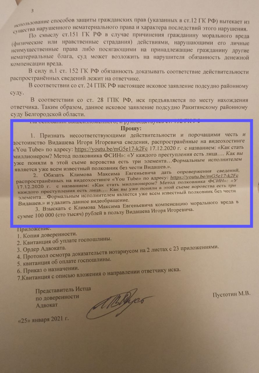 Наконец-то получил новое исковое от Видашева и тут всë ещë забавнее: