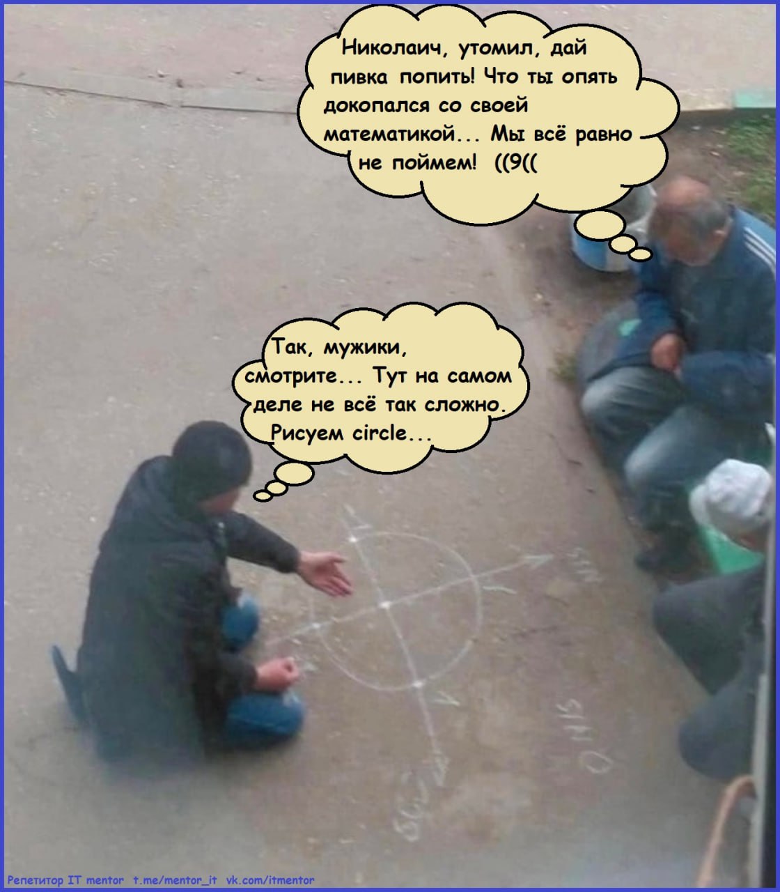 f(x) = f(x + k⋅T), где k ∈ ℤ. Пример: sin(1830°) = sin(30° + 5⋅360°) = sin(30°) = 0.5. Вот ученики встречают полный оборот иии... уже хотя скорее забыть, что можно обнулиться и по факту 360° = 0°. Странная математика? Да нет, здесь всё в порядке. Просто мы имеем дело с периодическим процессом. И вот мы подходим плавно ко второму пункту...▪️ Всё, что нам нужно — понять тригонометрический круг, познать дзен тригонометрического круга. По сути этот круг представляет собой абстрактную модель траектории движения конца единичного радиус-вектора, который своим началом закреплен в начале координат