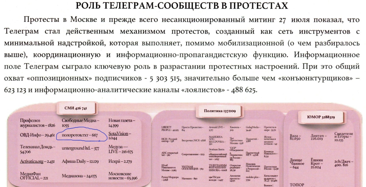 Так вот, мероприятие закончилось, я беру себе эти доклады, ручкаюсь с Малькевичем, прыгаю в метро, начинаю читать и вижу свой телеграм-канал на 600 человек в списке «координаторов протеста».