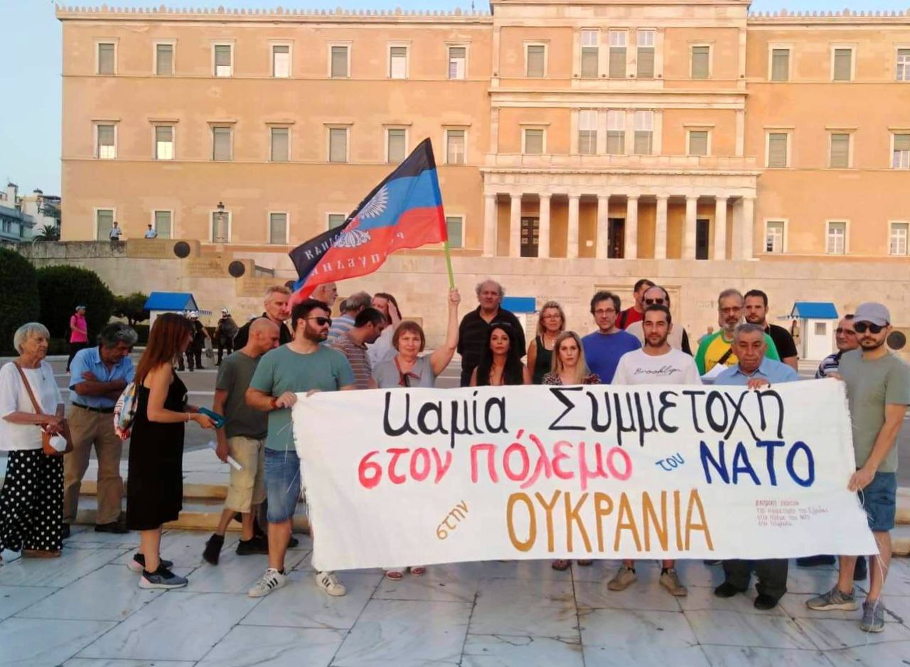 Вчера, 22 июня, члены "Комитета против участия Греции в войне НАТО на Украине" выступили против политики своего государства в отношении России, ДНР, ЛНР и Украины.