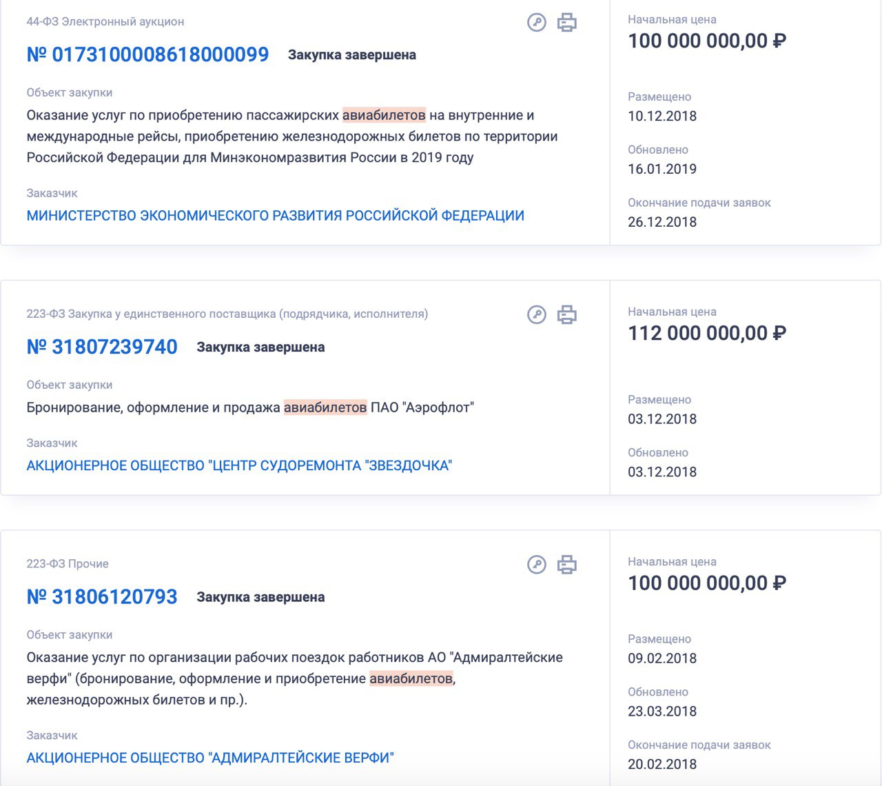 И вообще, очень интересно взглянуть, откуда в «Трансперенси» взяли конкретные суммы по перелетам отдельных чиновников, ведь на госзакупках даны только общие суммы по всем авиаперелетам. Понять, кто где на сколько налетал, невозможно (просто посмотрите на приложенный снимок экрана). А вот «Трансперенси» пишет: