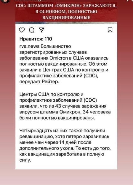 В социальных сетях распространяется информация о том, что новый штамм ковид-19 «омикрон» поражает исключительно полностью привитых людей. Утверждается, что соответствующую информацию опубликовали на портале Центра по контролю и профилактике заболеваний США. Однако если обратиться к англоязычному материалу на портале, то окажется, что ничего подобного в нем не говорится.