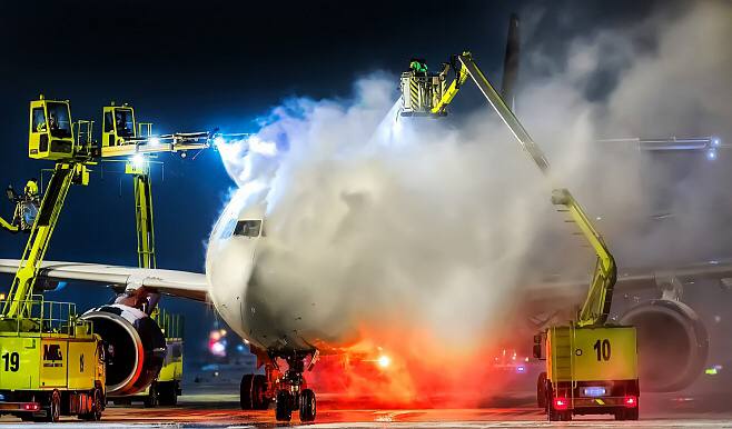 Странные машины поливают корпус и крылья самолета раствором, похожим на мыльный, пока пассажиры и экипаж готовятся к взлету. Как будто самолету сейчас будут тереть спинку. Но за такой простой процедурой, напоминающей пенную вечеринку, стоят десятки работников и единиц техники, ведь от нее зависят жизни людей.