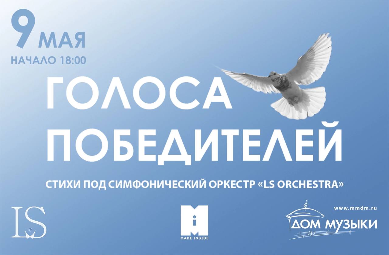 9 мая в Московском международном Доме музыки прозвучат лучшие стихотворения проекта «Голоса Победителей» в сопровождении симфонического оркестра LS orchestra (художественный руководитель – Леонид Сивелькин). Композиторы оркестровой версии – Игорь Кулька и Даниил Губанов.