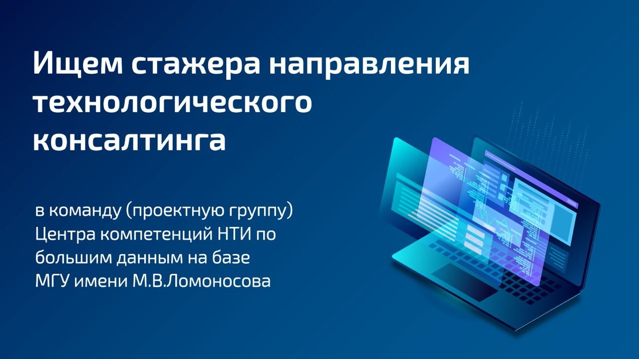 Предлагаем оплачиваемую стажировку в направлении технологического консалтинга Центра компетенций НТИ по большим данным на базе МГУ имени М.В.Ломоносова. Центр - структурное подразделение университета.