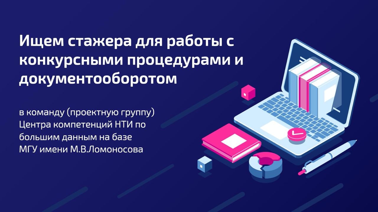 Предлагаем оплачиваемую стажировку в административном блоке Центра компетенций НТИ по большим данным на базе МГУ имени М.В.Ломоносова. Центр - структурное подразделение университета. Стажировка предполагает работу с конкурсными процедурами и документооборотом.