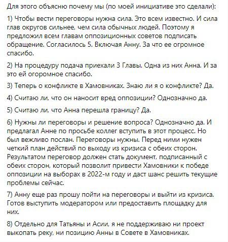 К слову, о её шатаниях. Тут Морев каким то образом затесался в группу Хамовников на Facebook со своим постом о том, какая Лукьянова молодец, что ездит вместе с Ассоциацией Независимых Депутатов, подает обращения в Департамент финансов Москвы и готова отважно участвовать с ними в обсуждениях бюджета на 2022-2024 гг. Департамент, правда, не готов к такому развитию событий. Так если она такой молодчик, может, стоит ее полноценно забрать в эту Ассоциацию, в обращение которой расписались аж три главы округов Москвы из 125 (чувствуем запах успеха!)? Пусть катается вместе с Моревым, займется «полезным» делом. Да здравствует движение ради движения! Правда, боимся, что работа главы округа начнет сильно мешать Лукьяновой быстро передвигаться с АНД. Вдруг она сильно устанет от возложенных на нее полномочий, ведь, работая главой округа, она чуть ли не зашивается!