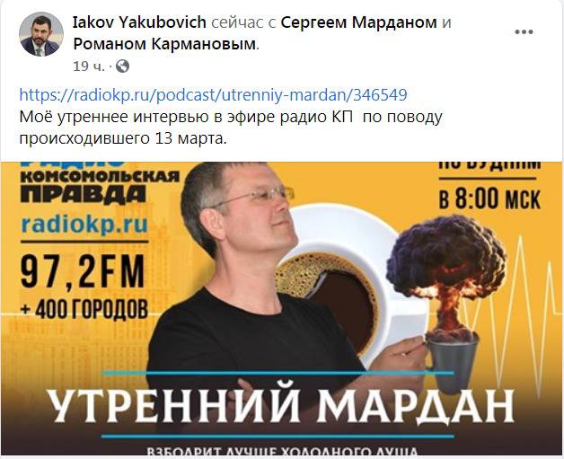 Очередной приступ проявления огромного ЧСВ или «маленького царька» случился у главы МО Тверской Якубовича. Избранный «многонациональным народом Тверского района» Якубович дал интервью на радио Комсомольской правды, в котором рассказал о невероятном происшествии, случившемся на форуме «Муниципальная Россия» в субботу 13 марта.