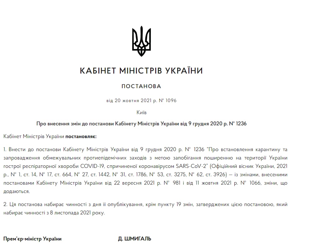 Об этом говорится в постановлении, подписанное премьер-министром Шмыгалем.