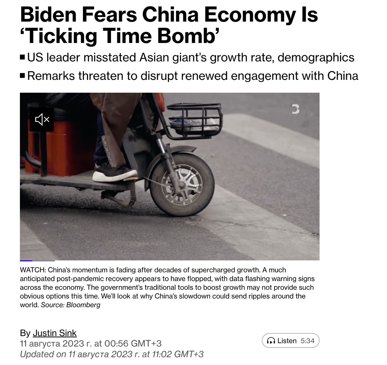 «Китай рос на 8% в год, чтобы поддерживать рост, который сейчас приближается к 2% в год. Это ситуация, когда количество людей пенсионного возраста превышает количество людей трудоспособного возраста. Поэтому у них возникли некоторые проблемы. Это нехорошо, потому что, когда у плохих людей возникают проблемы, они делают плохие вещи», — заявил Байден.