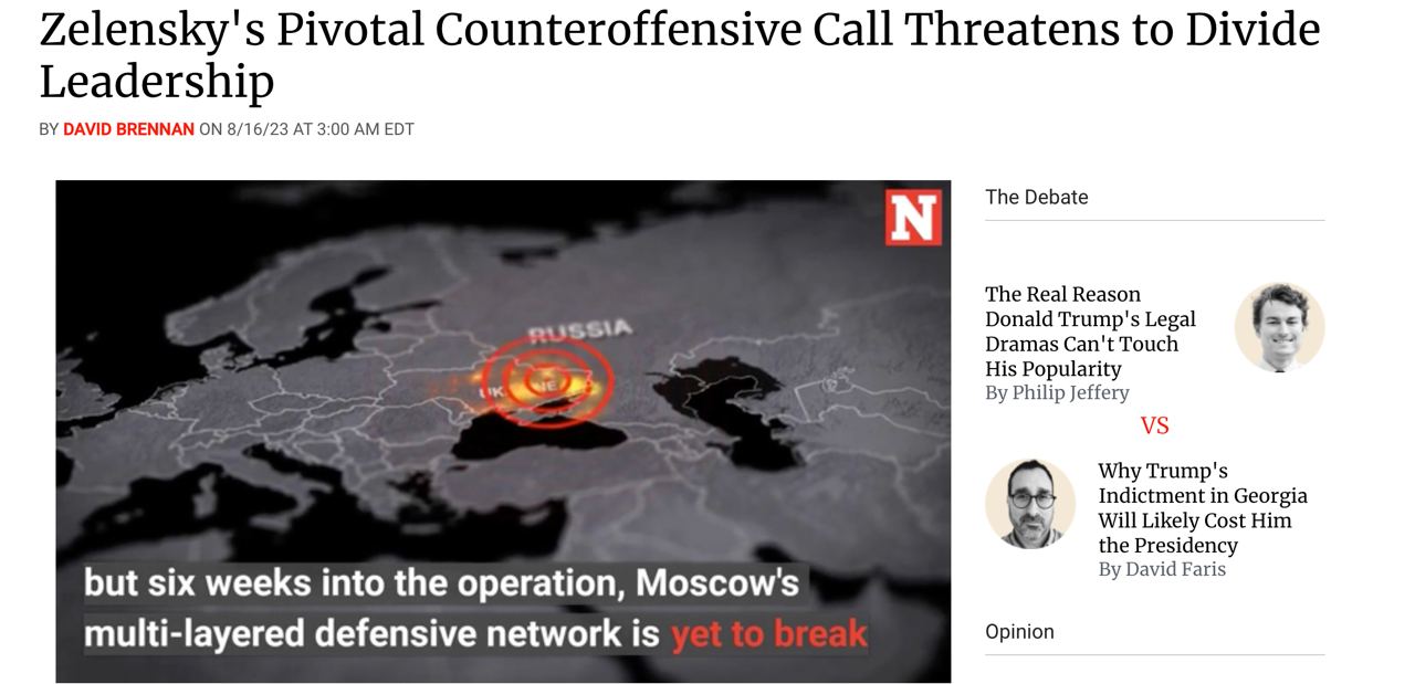 «Есть ощущение, что они были введены в заблуждение военными в отношении того, насколько хорошо пройдет это контрнаступление, что им были предоставлены чрезмерно радужные оценки с военной стороны», — сказал источник Newsweek.
