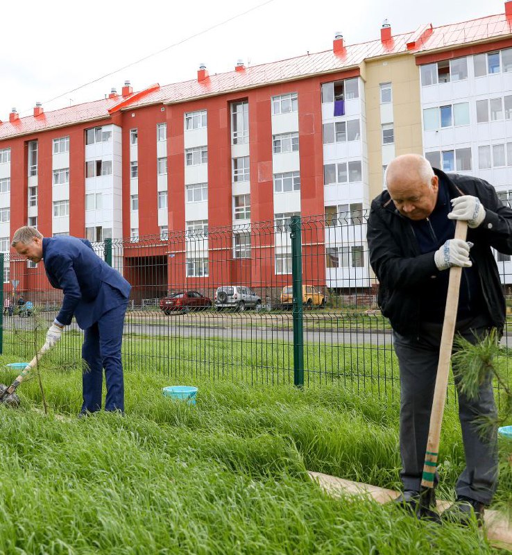 Ранее присевший за мошенничество глава НАО Баринов внезапно появился в округе и отметился ✔️ на высадке деревьев 🌳 у третьей школы.