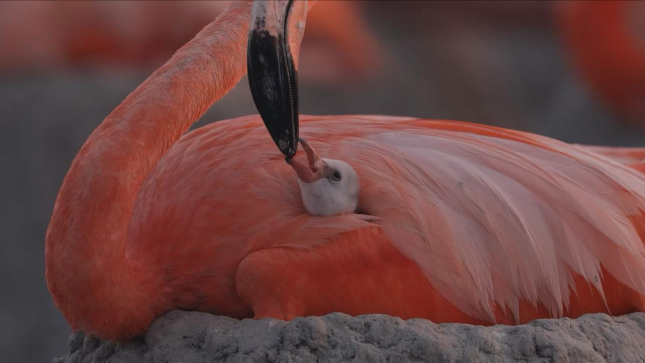 Эта чудесная история рассказывает о том, как карибские фламинго переживают самый трогательный период своего существования. Фильм, работа над которым велась более девяти лет, открывает новые горизонты в кино о природе, сочетая уникальное повествование с юмором и захватывающими дух образами. Фильм озвучен певицей Джульетой Венегас, сопровождается саундтреком обладателя «Грэмми» Брайса Десснера и обещает стать незабываемым кинематографическим опытом.