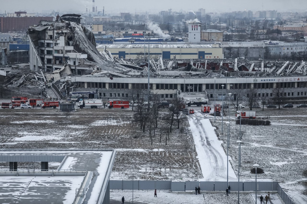 ⚡️В Петербурге по время демонтажа СКК рухнула крыша (Видео: Фонтанка)