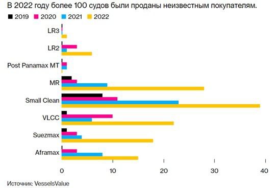 Составить воедино его точный размер практически невозможно, поскольку сведения о владельцах — и принадлежность большинства отдельных судов к России — окутаны тайной, пишет Bloomberg.