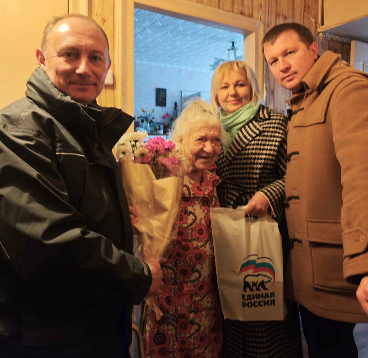 От имени партии «Единая Россия» депутат Законодательного Собрания Александр Ходосок поздравил со 100-летним Юбилеем старейшего жителя поселка Молодежное — Прасковью Никитичну Сакову.