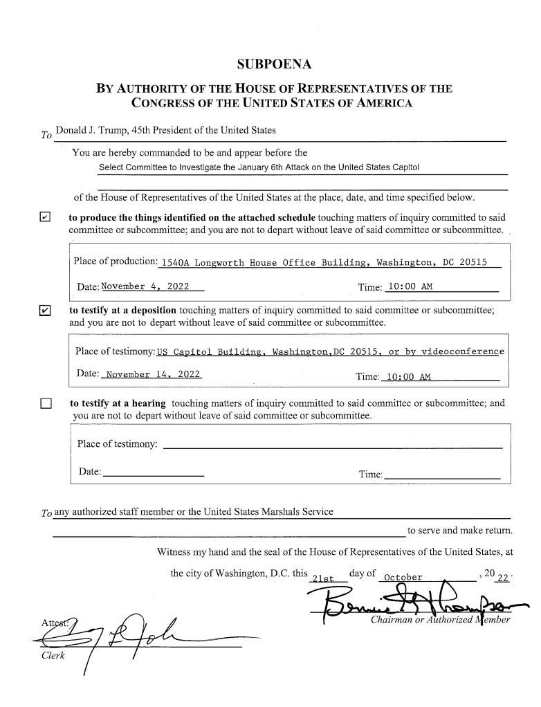 Спецкомитет по расследованию нападения на Капитолий требует от экс-президента США предоставить до 4 ноября определенные документы и дать показания под присягой 14 ноября.