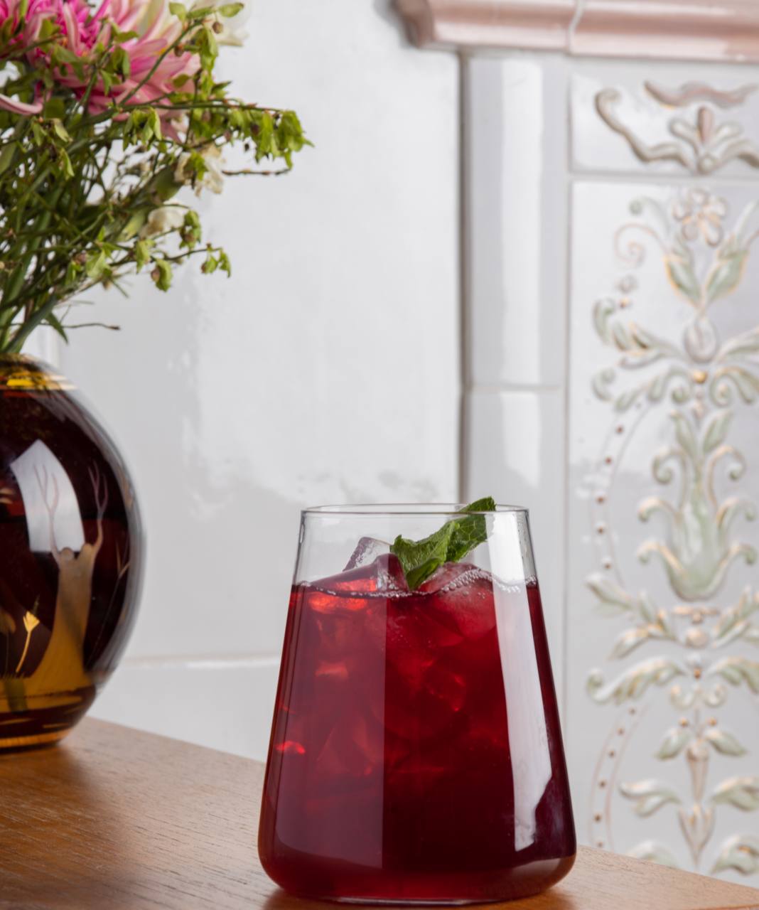 На вид настой похож на чёрный чай с фиолетовым оттенком, пурпурный цвет он приобретает за счёт высокого содержания антоцианов — веществ, образующихся в листьях под воздействием солнечного света и тепла.
