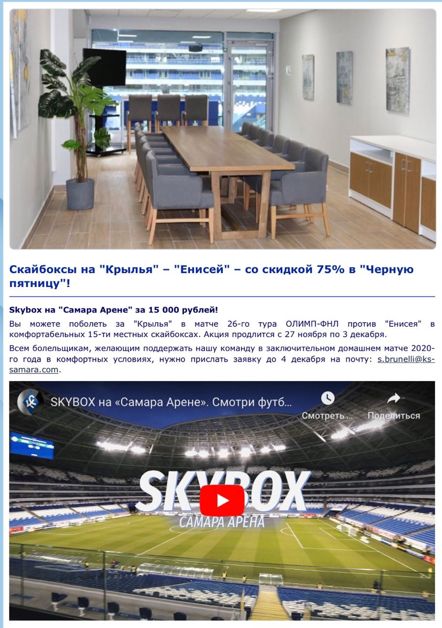 «Skybox на матч «Крылья» — «Енисей» со скидкой 75% в «Чёрную пятницу»!»