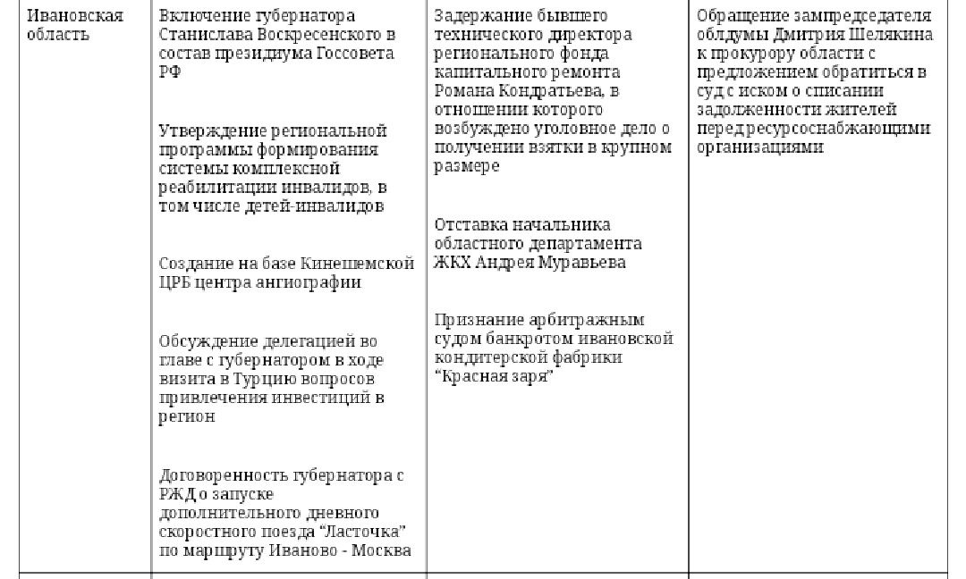 Позитивные, негативные и прочие заметные события в регионе, попавшие в поле зрения фонда, вы можете видеть в таблице под этим текстом.