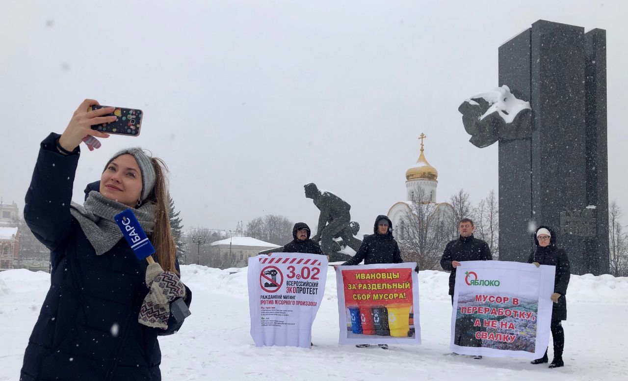 🍏 Пикет "против мусора", проходящий в Иванове в рамках всероссийской* акции протеста, нельзя назвать многочисленным.