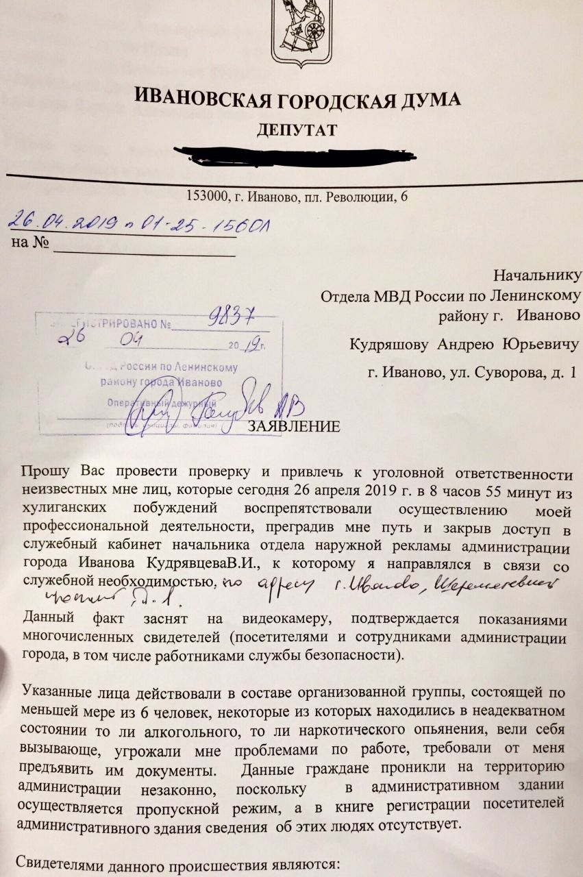 Адвокат Оскар Черджиев разместил видео потасовки устроенной в минувшую пятницу в здании администрации Иваново. Неизвестные лица забарикадировали дверь начальника управления по делам наружной рекламы и препятствовали исполнению профессиональных обязанностей депутату Ивановской городской думы.