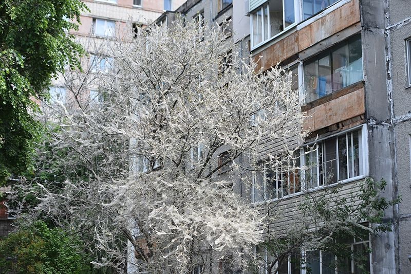 У Гомелі змагаюцца з небяспечнымі вусенямі, якія ахутваюць дрэвы павуціннем. Лічынкі распаўсюджваюцца надзвычай імкліва, таму марудзіць нельга, кажуць камунальнікі.