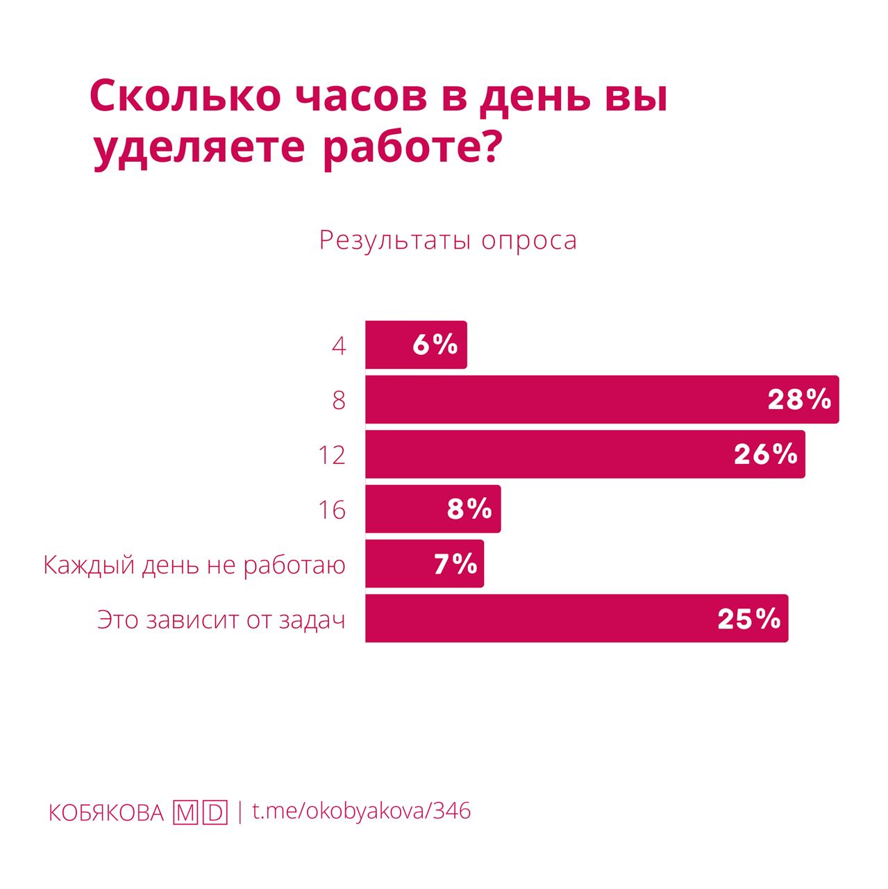 Информирую вас об итогах опроса на предмет количества часов, уделяемых работе, ежедневно.