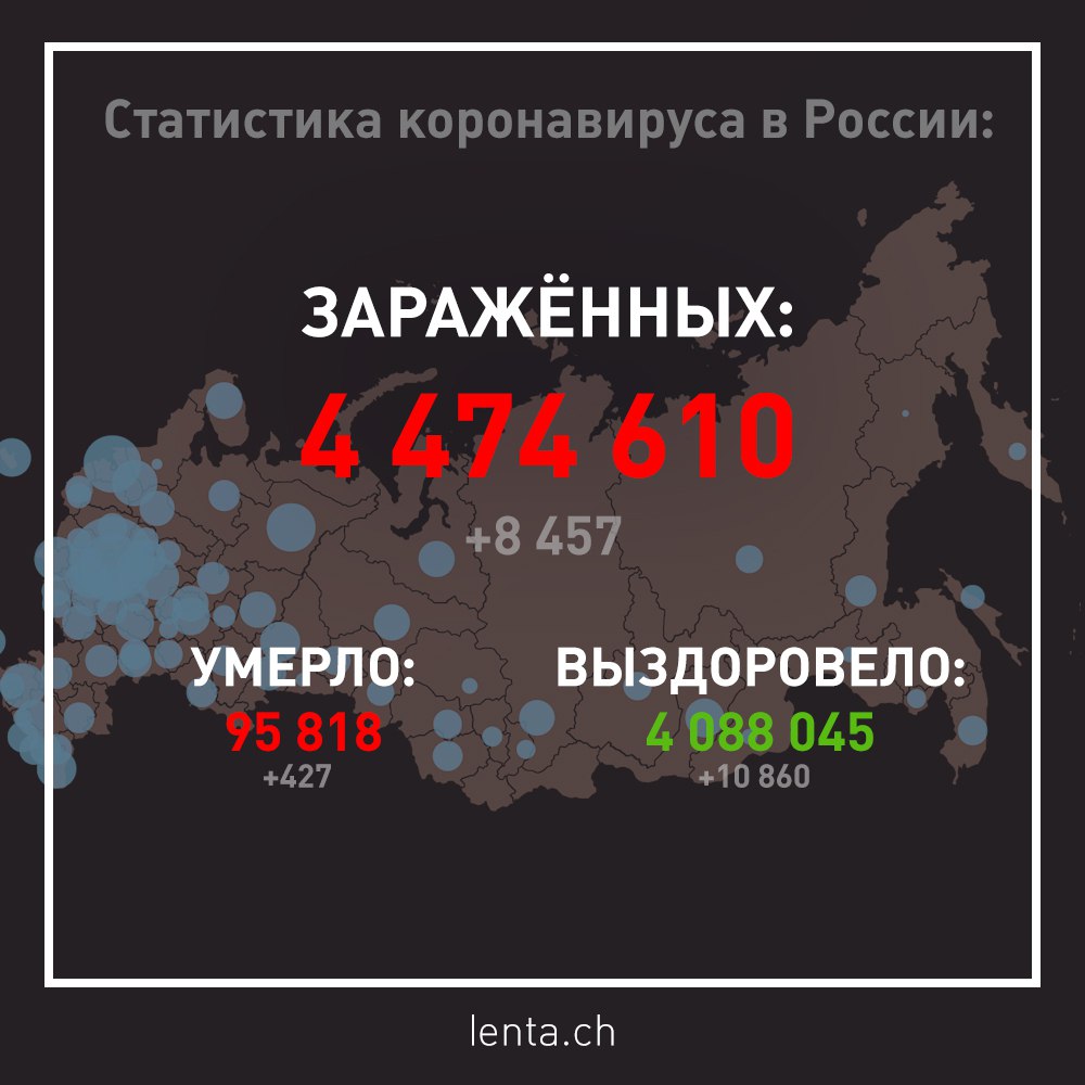 ✹ Более 4 300 000 россиян получили оба компонента вакцины «Спутник V», заявил Путин. К середине июня Минздрав планирует привить более 30 000 000 граждан;