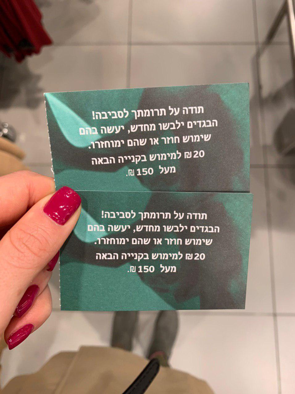 В Израиле за каждый пакет с вещами вы получаете скидочный купон на 20 шекелей при покупке от 150 шекелей.