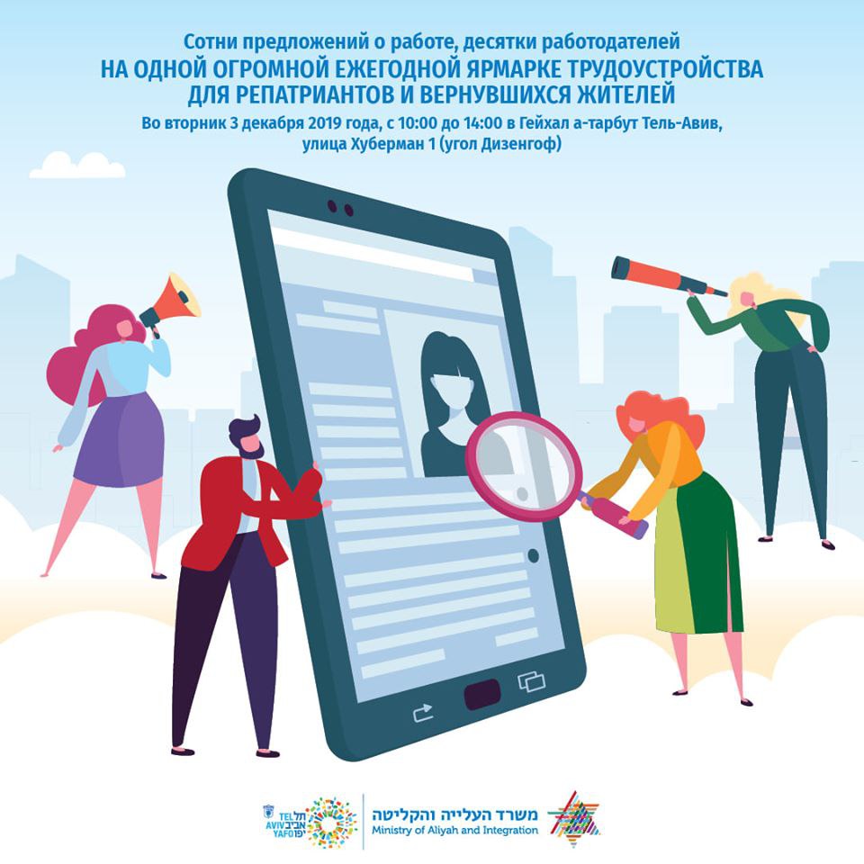 3 декабря с 10:00 утра до 14:00 мэрия Тель-Авива совместно с министерством алии и интеграции организует ярмарку трудоустройства.