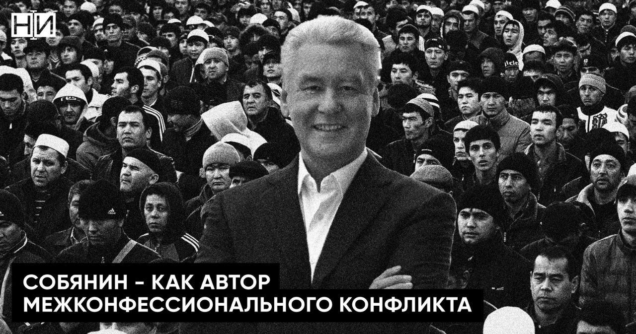 У Собянина под носом, а скорее при его участии, зреет религиозные конфликт. Если образно, то с одной стороны выступают коренные москвичи с лозунгом "Мы — русские и с нами Бог!". А с другой многочисленные приезжие из армии Марата Хуснуллина с посылом "Мы — мигранты из мусульманских республик и с нами Собянин!"