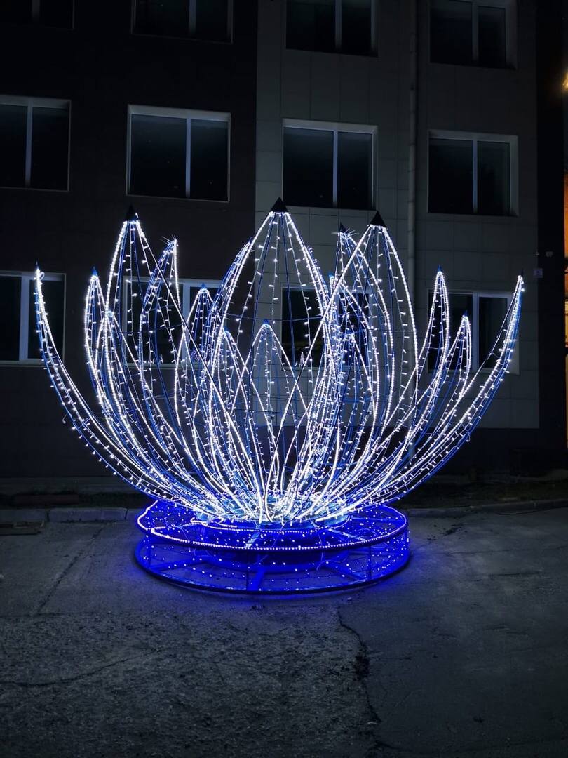 Зима только закончилась, а мы уже готовимся к встрече 2022 года. Новогоднее убранство Череповца будет совершенно другим. Посмотрите, какая красивая получилась лилия. Планируем, что подобные фигуры заменят светодиодные фонтаны на главных городских площадях.