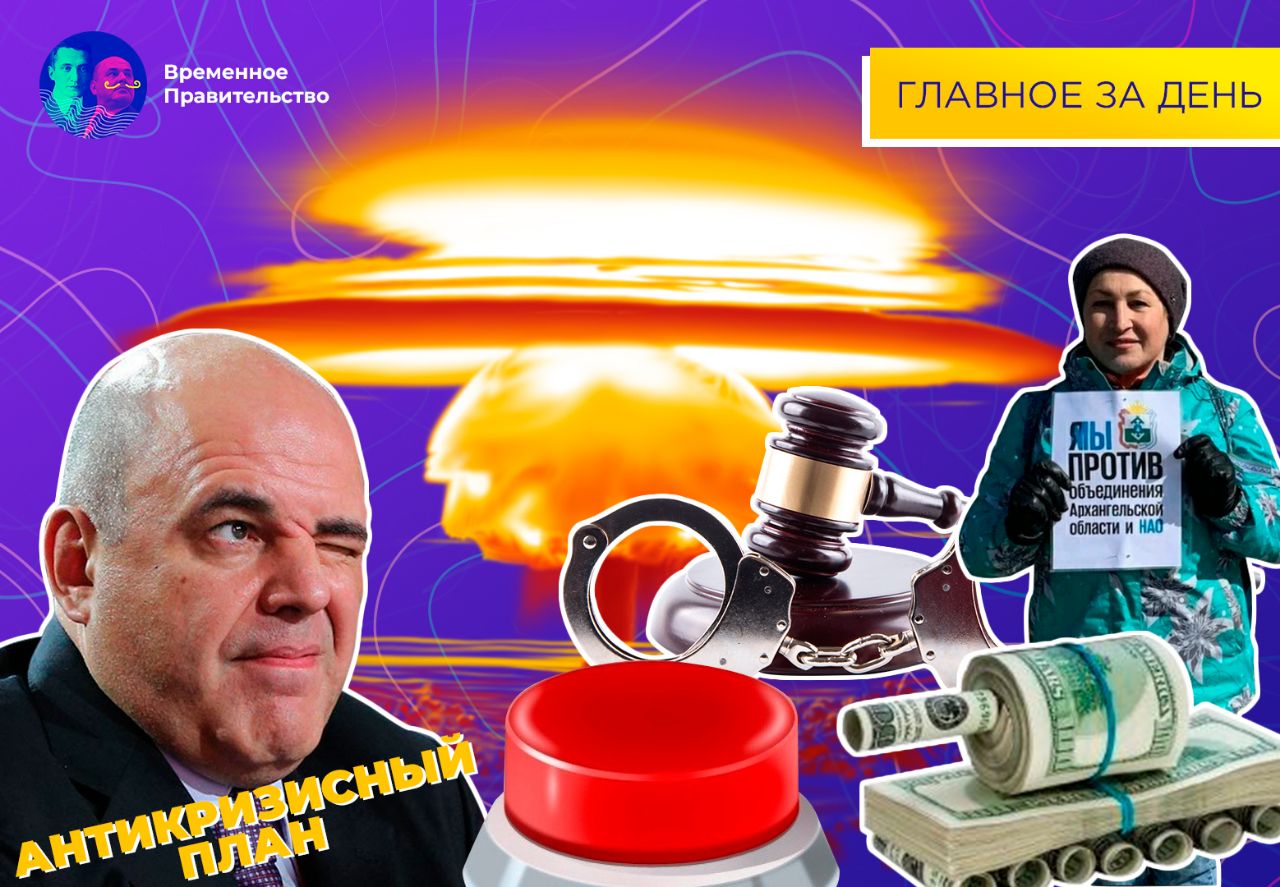 Михаил Мишустин представляет в АП антикризисный план. Но увидим документ ещё не скоро. Сегодня план в АП, завтра будет обсуждение с президентом, потом наверняка будут правки, опять обсуждения, а потом... про него все забудут, ка ки про многочисленные подобные документы.