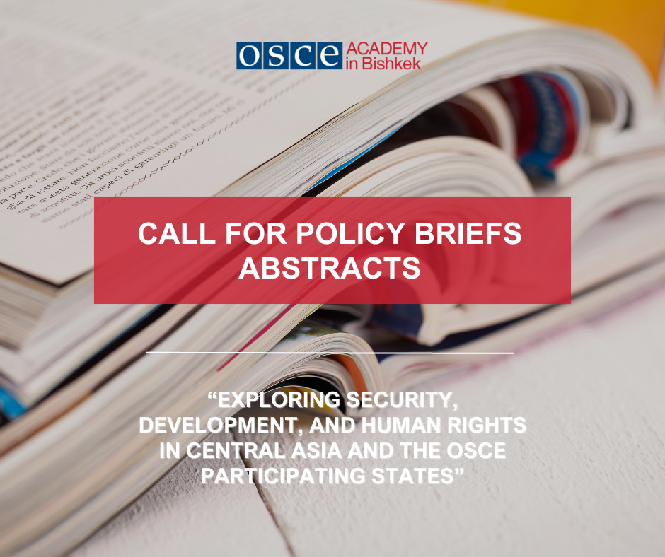 The OSCE Academy in Bishkek is pleased to announce its Call for Policy Briefs Abstracts on pertinent themes encompassing international relations, security, society, and development in Central Asia and the OSCE States. We invite scholars, researchers, and practitioners to submit the proposed Policy Briefs Abstracts in English language focused on any of the topics listed below:
