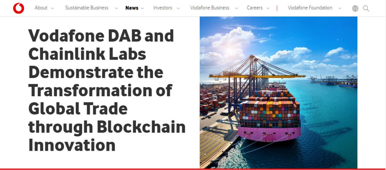 ⛓Компания Vodafone, совместно с Chainlink Labs, презентовала использование алгоритма Proof-of-Concept в качестве решения проблем мировой логистики (рынок стоимостью $32 трлн)