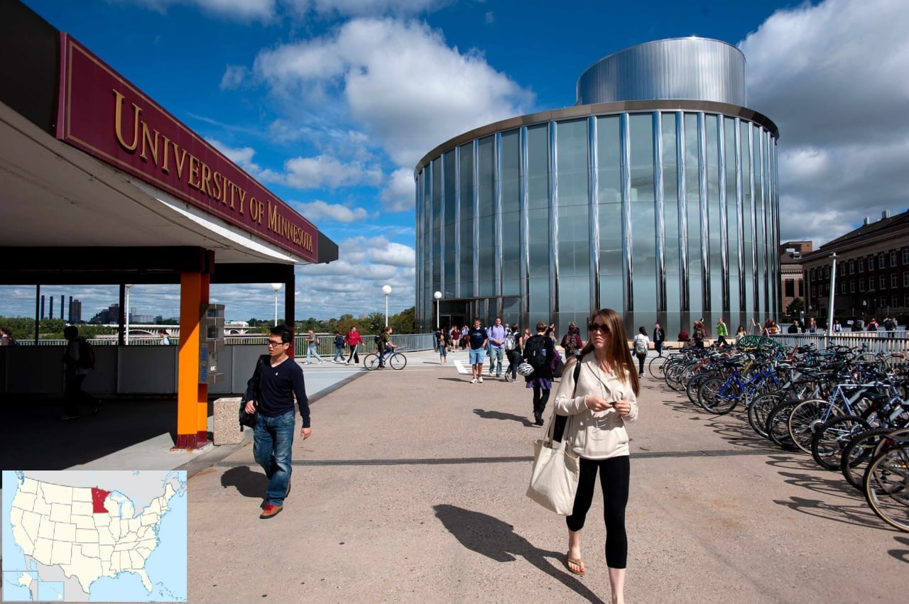 Самый большой город штата – Миннеа́полис. Он примыкает к столице Миннесоты, Сент-Полу, и вместе их называют Twin Cities (Города-близнецы). Они лежат на двух берегах самой известной американской реки - Миссисипи. В Twin Cities живет 3,6 миллиона человек – больше половины жителей штата. Не удивительно, что лучший вуз тоже находится здесь. Это Университет Миннесоты в Twin Cities. У него 2 кампуса на расстоянии 5 км друг от друга - в обоих городах-близнецах. Вуз ооочень крупный. В нем учится больше 52 тысяч студентов.