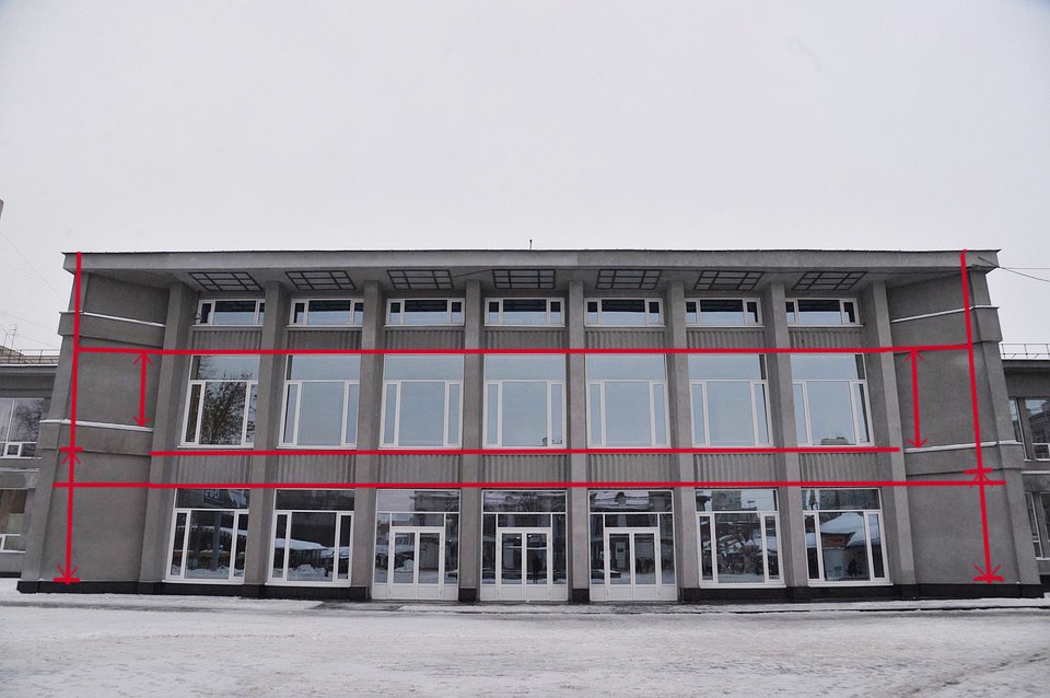 На архивных фото хорошо видно, что у цирка советского времени боковых элементов не было вовсе. Позже они появились, как основа под афиши, и были симметричными.