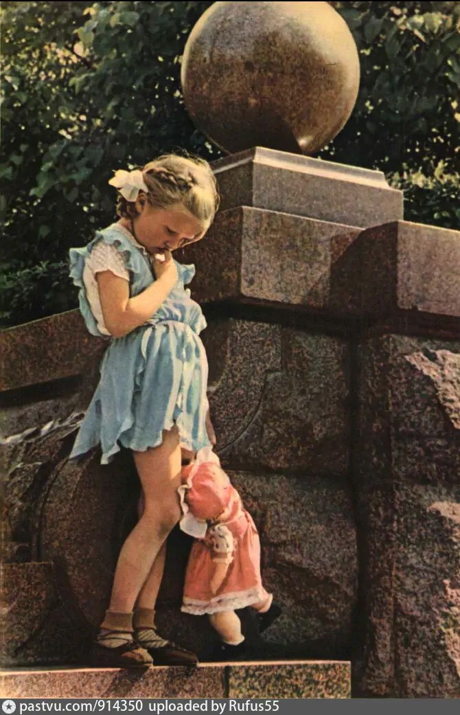​​Девочка с куклой у гранитного ограждения Пушкинского сквера, 1955.