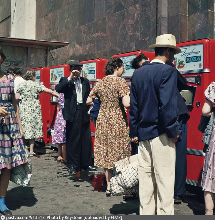 ​​Прогрессивные формы торговли – автомат АТ-114 для продажи газированной воды в стеклянные стаканы, 1961.