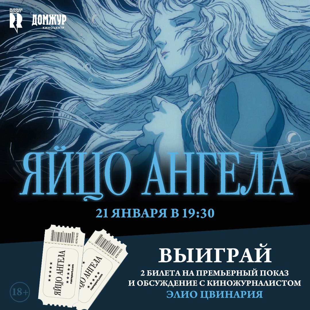 21 января в киноцентре «ДомЖур» пройдет специальный показ атмосферного и невероятно красивого аниме «Яйцо ангела». Показ пройдет на японском языке с русскими субтитрами. Фильм представит и обсудит со зрителями Элио Цвинария, исследователь анимационного кино, художник и киножурналист.