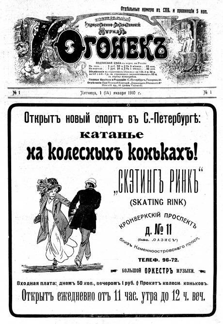 Из года в год, с первыми тёплыми лучами солнца, петербургская публика возвращается к спорту. И этот аспект городской жизни не остаётся в стороне от последних тенденций моды. Каждый сезон проходит под эгидой какого-либо спорта, которому предаются в ущерб остальным. Так, например, было уже с теннисом и велоспортом. В 1910 модной новинкой становится катание на роликовых коньках по паркету. Увлечение, которое давно популярно заграницей и с которым хорошо знакома та часть петербургской публики, которая проводит существенную часть года на европейских курортах. Казалось бы — ничего нового, очередная мода на волне которой обогатятся наиболее прозорливые предприниматели. Однако увлечение катанием по паркету на роликовых коньках достигает уровня самого настоящего помешательства.