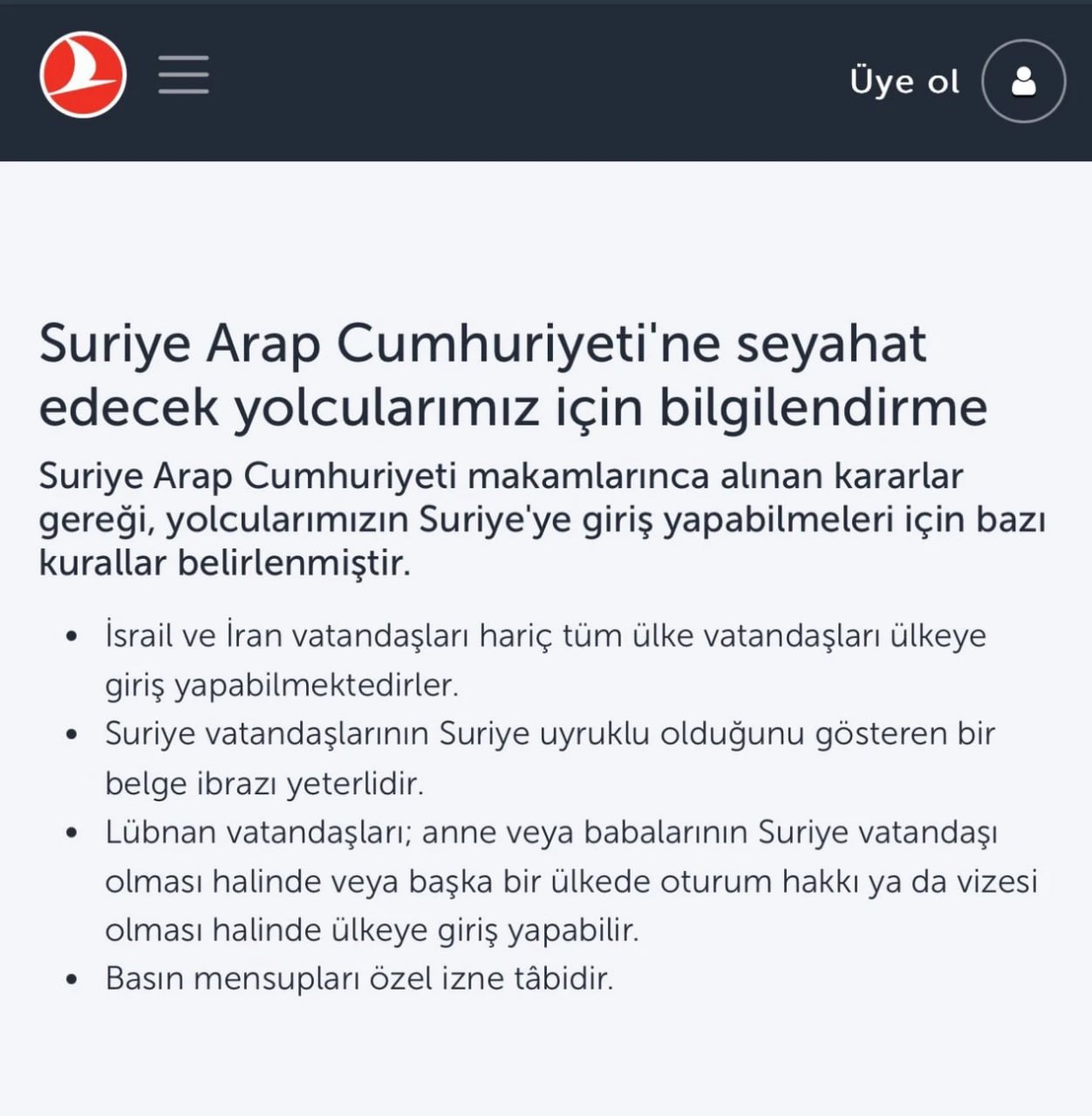 Объявление было опубликовано на официальном сайте THY вместе с подробными инструкциями для пассажиров, вылетающих в Сирию.