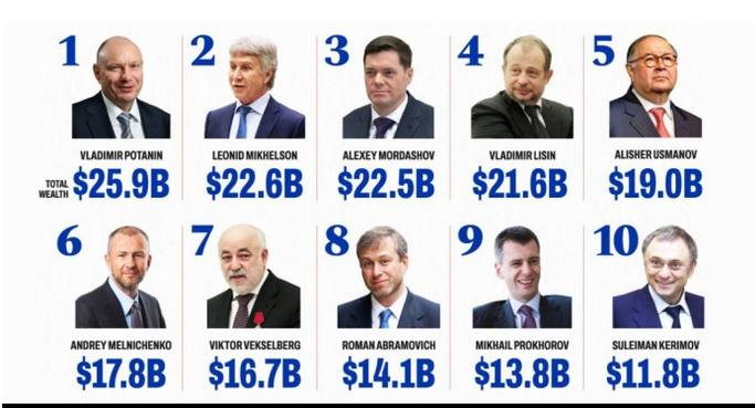 10 крупнейших российских олигархов = $180 млрд. Более $300 млрд в замороженных активах центрального банка + около $100 млрд в активах компаний + активы более мелких олигархов = >$600 млрд. Это 1/3 ВВП России.