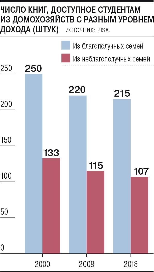 С 2000 года, несмотря на широкое распространение цифровых книг, студенты и школьники как из благополучных, так и из неблагополучных семей (с учетом материального положения) сообщили о меньшей доступности литературы. Это следует из данных исследования Международной программы по оценке образовательных достижений учащихся (PISA).