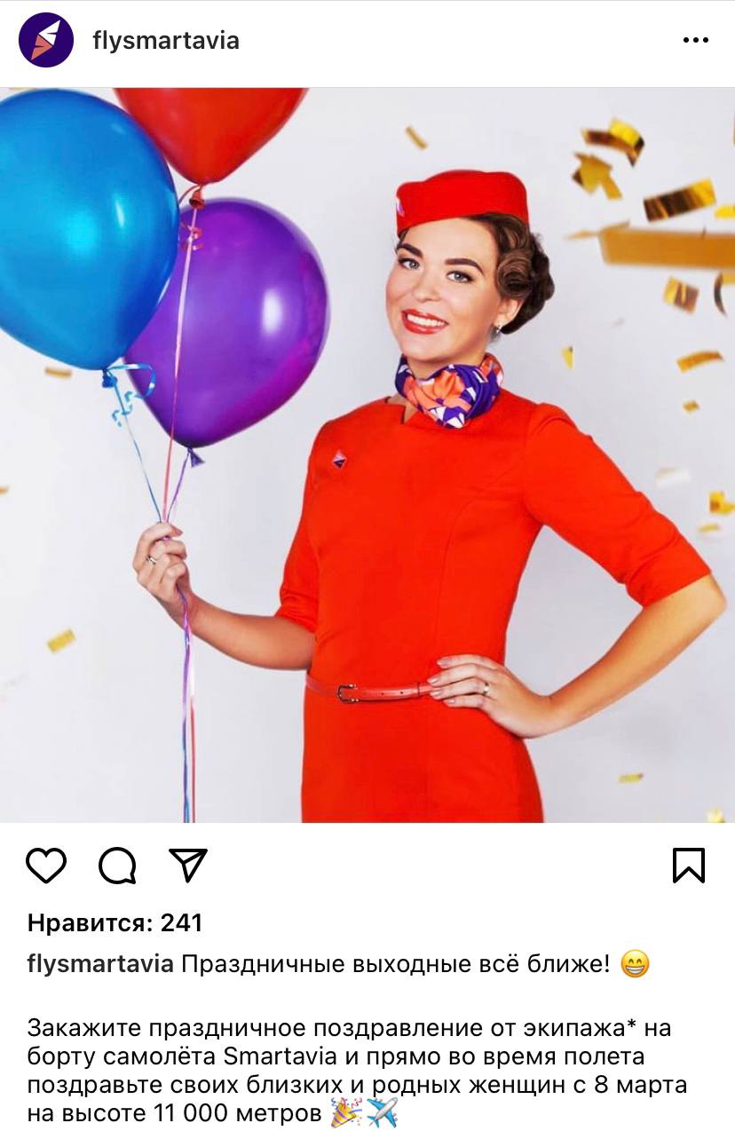 Smartavia решила перед праздниками напомнить об актуальной услуге - "Поздравление на борту". Суть в том, что за ₽1 тыс. можно передать поздравление пассажиру, которое бортпроводники зачитают в полете по громкой связи. Для сравнения, по аналогичной цене у Smartavia недавно можно было купить сами билеты.