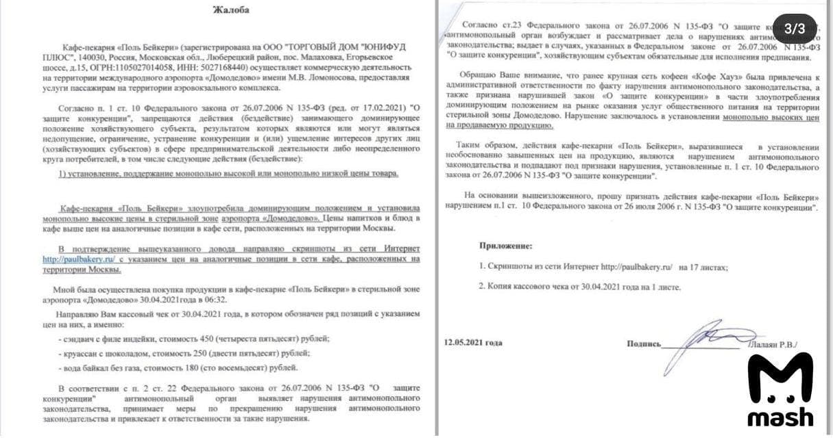 Пассажир-юрист хочет засудить кофейню "Пол Бейкери" в "Домодедово" за высокие наценки. Стоимость блюд в аэропорту в разы дороже, чем в других заведениях сети.